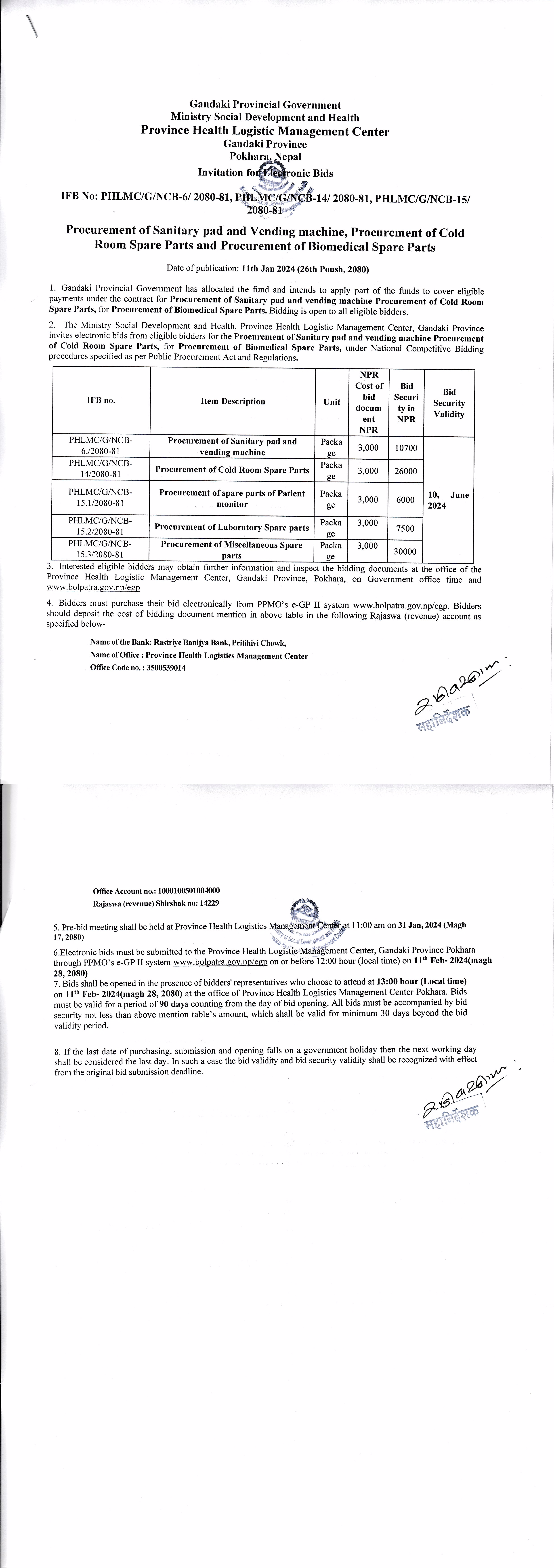 Download: बोलपत्र आह्वानको सुचना NCB 6, NCB-14 and NCB.15