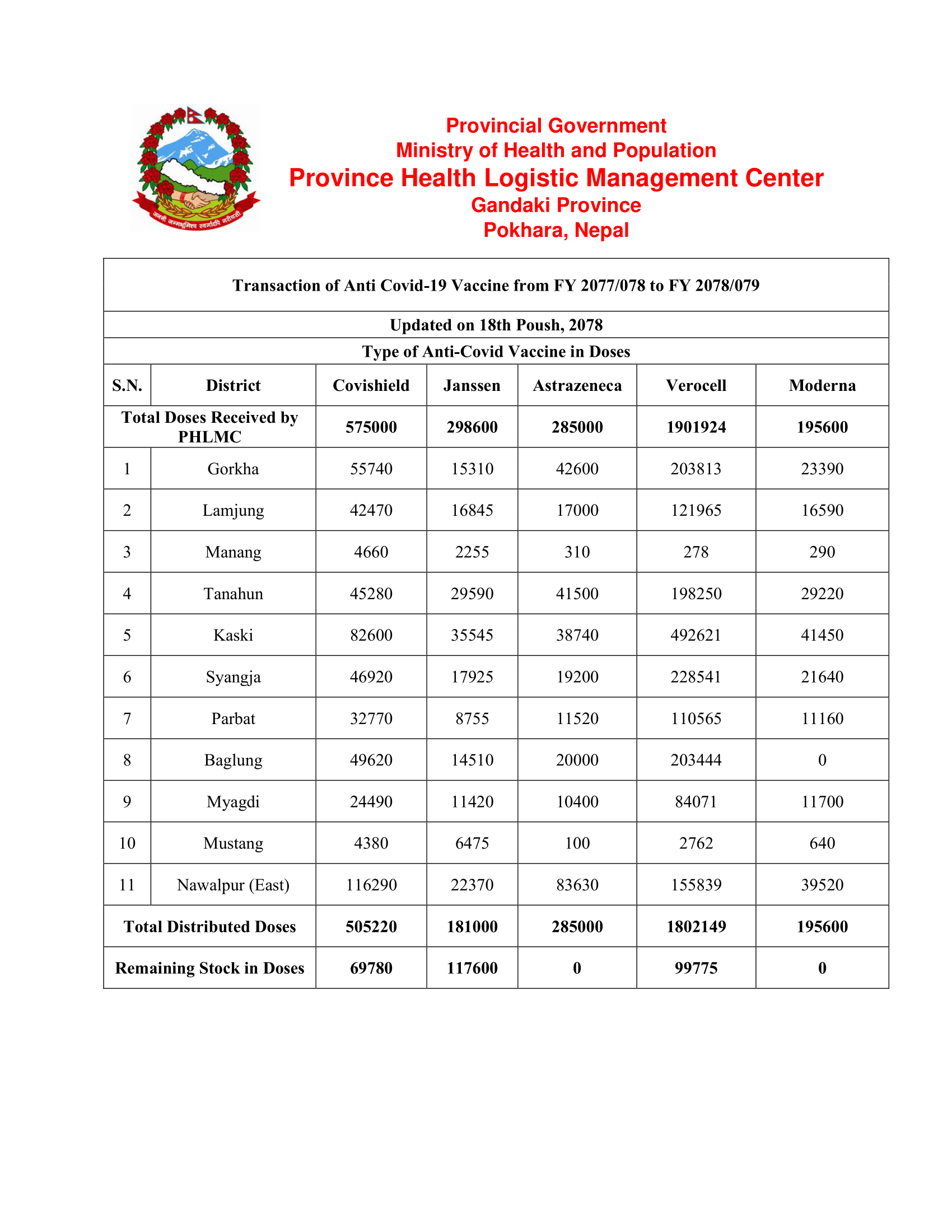 Download: कोभिड-१९ विरुद्धको खोप वितरण गरिएको परिमाण (डोजमा)